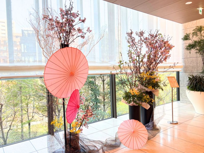お知らせ 2026.03.22 マンションエントランスに桜の装花を実施 都内マンションのエントランスで桜の装花を実施いたしました。今年は陽光と八重桜の2種類の桜を用いて、桜の違いも鑑賞できるようにいたしました。和傘も用いて、華やかな空間へと仕上げました。マンションの住民の皆様には、日に日に花が咲いていく過程もお楽しみいただけます。屋内でのお花見も楽しんでいただけるよう、毎年違う種類の桜を用いています。 Hanavieでは、イベント会場やオフィス・店舗の装花なども承っております。花を使った空間演出のことも、どうぞお気軽にご相談ください News一覧