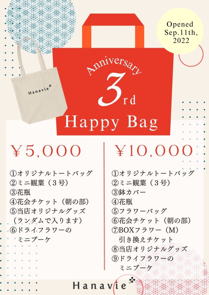 ・さらに3周年記念福袋の販売もいたします(5,000円と10,000円の2種類)
