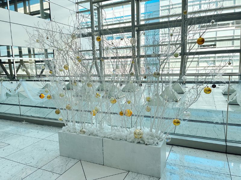 オフィスが入居するTFTビル西館の5階共用部にもホワイトクリスマスの装飾を実施